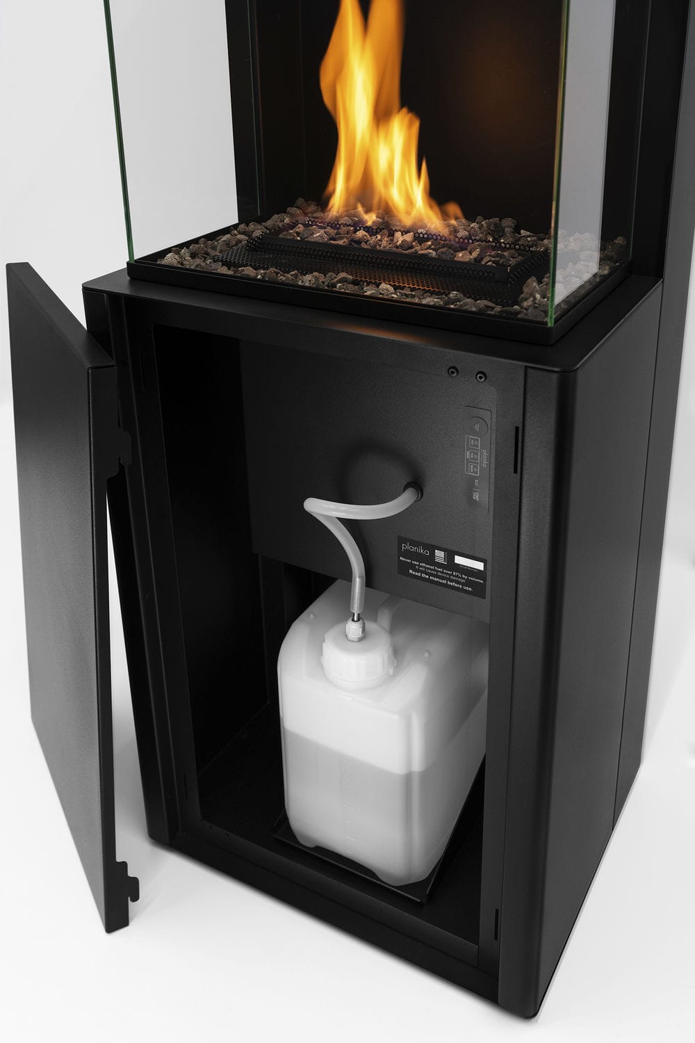 Tecnología segura e inteligente: con sistemas como BEV® (Burning Ethanol Vapours), Planika ha revolucionado la combustión de bioetanol al eliminar el contacto directo entre el líquido y la llama, ofreciendo una experiencia segura, limpia y controlada.